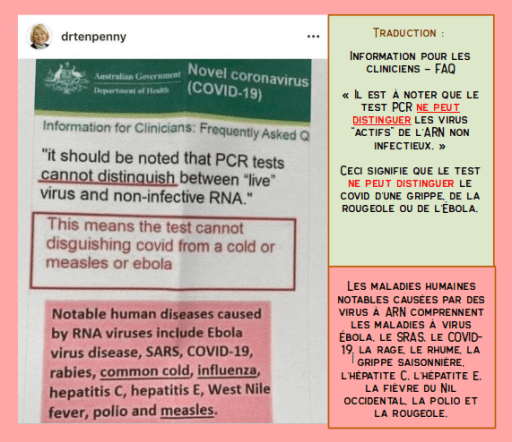 «Le test PCR provoque un faux “casdémique”… en utilisant le test PCR qui ne permet pas de diagnostiquer une infection active, une fausse narrative a été créée.»
