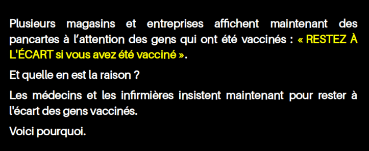 Une infirmière avertit de rester À L’ÉCART de ceux qui ont reçu le vaccin :