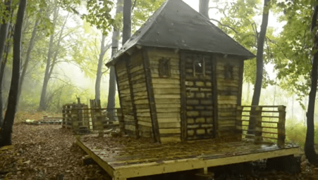 Maison dans les bois. Vidéo complète sur la façon dont Lesnoy Sergei, 21 ans, et son ami Tyson (le chien) ont construit une maison à partir de palettes usagées. Très instructif et joli… pour loup solitaire !