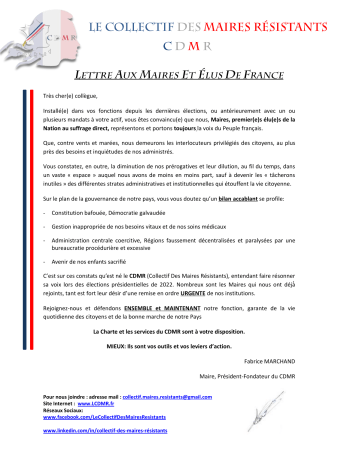 PRÉSENTATION DU COLLECTIF DES MAIRES RÉSISTANTS