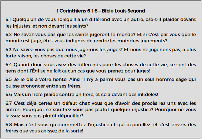 [Il est interdit aux disciples de Christ de poursuivre les autres (1 Corinthiens 6:1-8) et ce n’est pas le caractère d’un esclave de Christ d’utiliser des menaces contre les autres. Les mots que nous prononçons seront utilisés pour juger si nous sommes vraiment de Dieu ou du monde.]