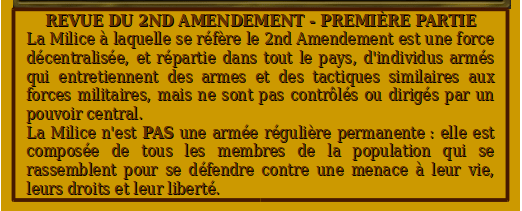 N’oubliez pas que nous avons le droit de nous défendre (un droit naturel et imprescriptible — et non un privilège accordé par de tierces parties) et donc de posséder des armes. (Je sais, ce n’est pas simple d’en avoir… mais ce n’est pas non plus impossible !)