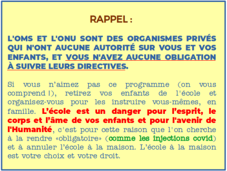 L’agenda officiel de l’ONU et de l’OMS vise à normaliser la pédophilie (les fameux «droits sexuels» [1] spécial pédos) par le biais de l’enseignement primaire… et à apprendre aux enfants à dire oui à toute demande sexuelle émanant de n’importe qui.