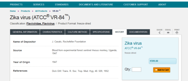 De plus, il est important de noter que le virus Zika est une marchandise qui peut être achetée en ligne via le site de l’ATCC-LGC pour 599.00 euros. Les redevances vont à la Fondation Rockefeller.