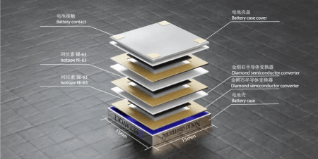 Entre les couches de nickel-63, la batterie intègre également des feuilles d’un semi-conducteur en diamant monocristallin, dont l’épaisseur est minuscule (seulement dix microns). Cette conception sophistiquée contribue à optimiser l’efficacité énergétique de la batterie.
