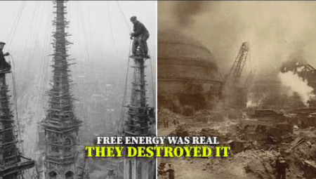 « En 1901, le banquier J.P. Morgan demanda à Nikola Tesla : «Où installe-t-on le compteur ?» Lorsqu’on lui répondit que l’énergie atmosphérique libre ne pouvait être mesurée [ni donc facturée], il fit détruire l’installation. Les bâtiments qui subsistent encore témoignent de l’existence de cette énergie libre pour tous. »