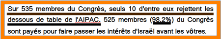 1. N’ayez aucun doute que l’AIPAC ayant des tentacules en France également (CRIF, B’nai B’rith, et al), les mêmes pots-de-vin sont distribués chez nous puisqu’on observe depuis des décennies les «dirigeants» et autres personnels politiques et affairistes français aller se prosterner chaque année au Dîner du CRIF d’où ils obtiennent leur feuille de route en faveur d’Israël… Raison pour laquelle, certains d’entre eux soutiennent ouvertement l’entité criminelle sioniste eu égard au génocide qu’elle a perpétré et qu’elle perpétue contre les Palestiniens — et qu’ils nient ouvertement en dépit des condamnations de la CIJ qu’ils rejettent — soit verbalement, soit en arborant le drapeau israélien, soit en portant des pins de ce drapeau sur leurs vestes dans l’enceinte des institutions de la république… Deux d’entre eux sont plus verbaux et actifs que d’autres : Meyer Habib et Caroline Yadan…